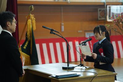 続いて、新入生代表の普通科特進コース 黒下穂香さんが宣誓を行い、