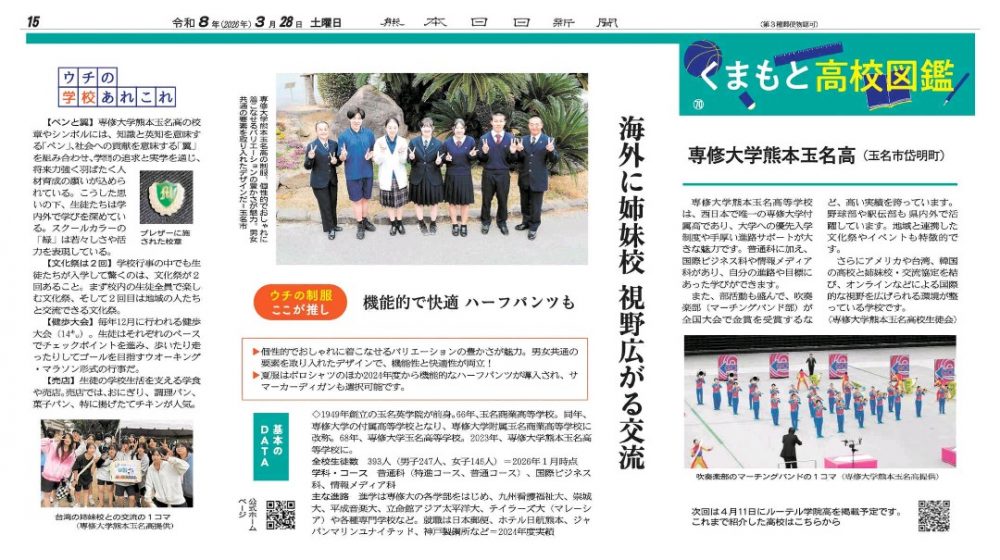 熊本日日新聞の「高校図鑑」で本校が紹介されました