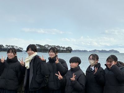 仙台駅到着後は、日本三景のひとつとして知られる松島を訪れ、美しい海と島々が織りなす絶景を見学しました。生徒たちは自然の雄大さに感動しながら、東北の魅力を肌で感じる貴重な時間を過ごしました。