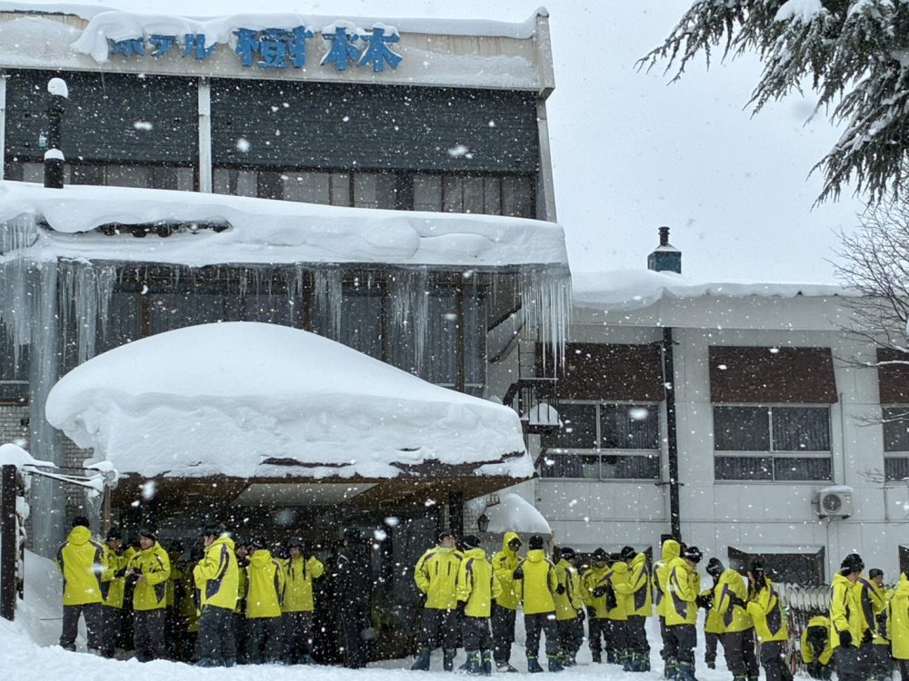 朝食後はスキーウェアに着替え、開校式を行い、