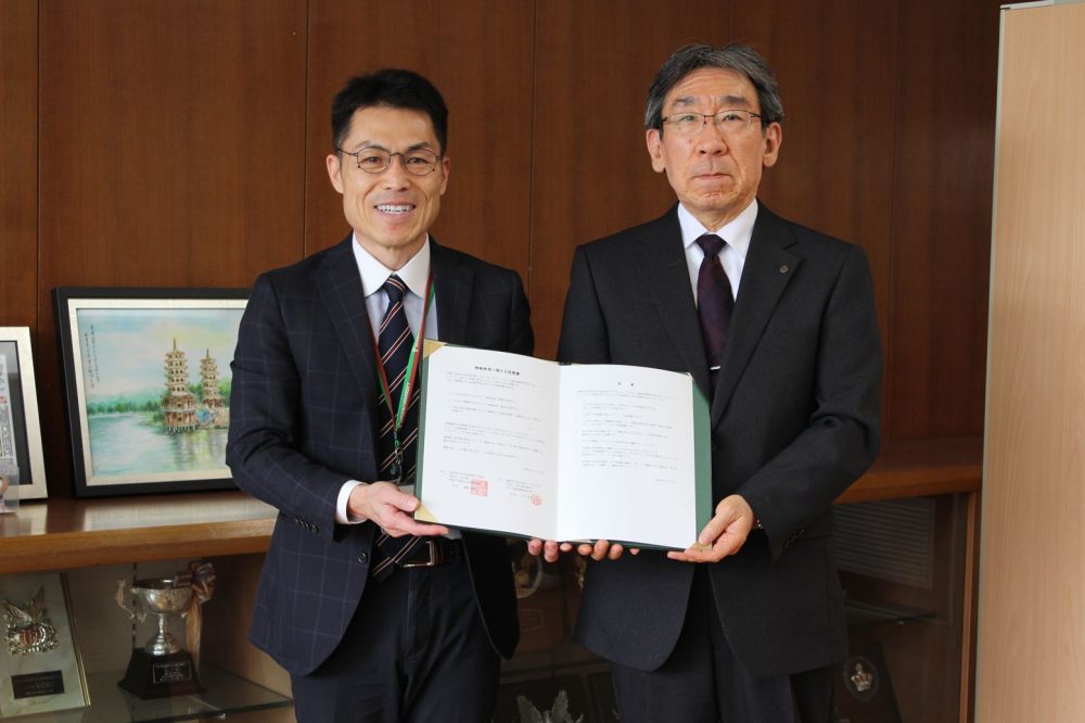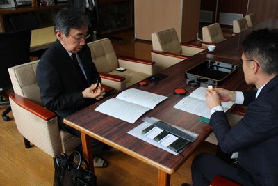 広報部 粉名内仁章様にご来校いただき、和やかな雰囲気の中で調印が行われました。